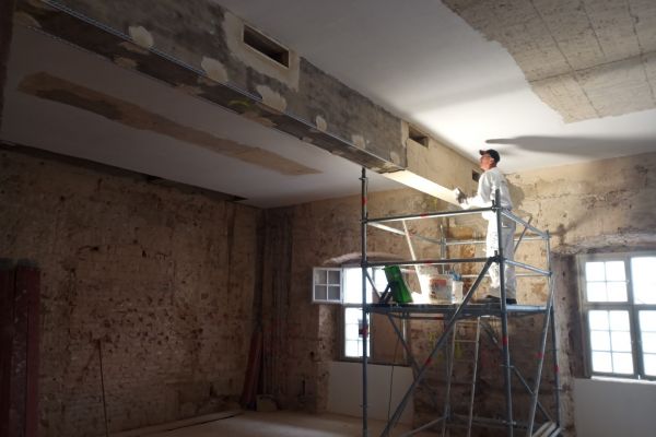 - Erstellen von Bearbeitungs-, Putz- und Farbmustern an Decke und Wand