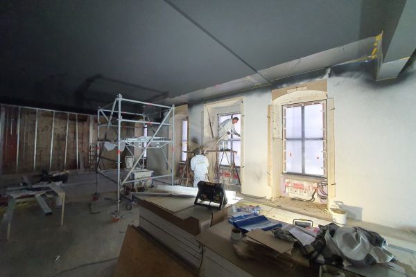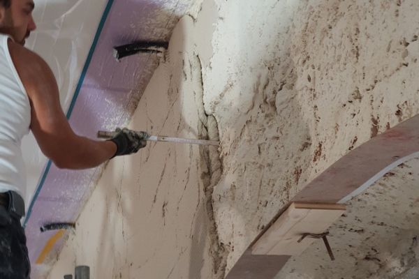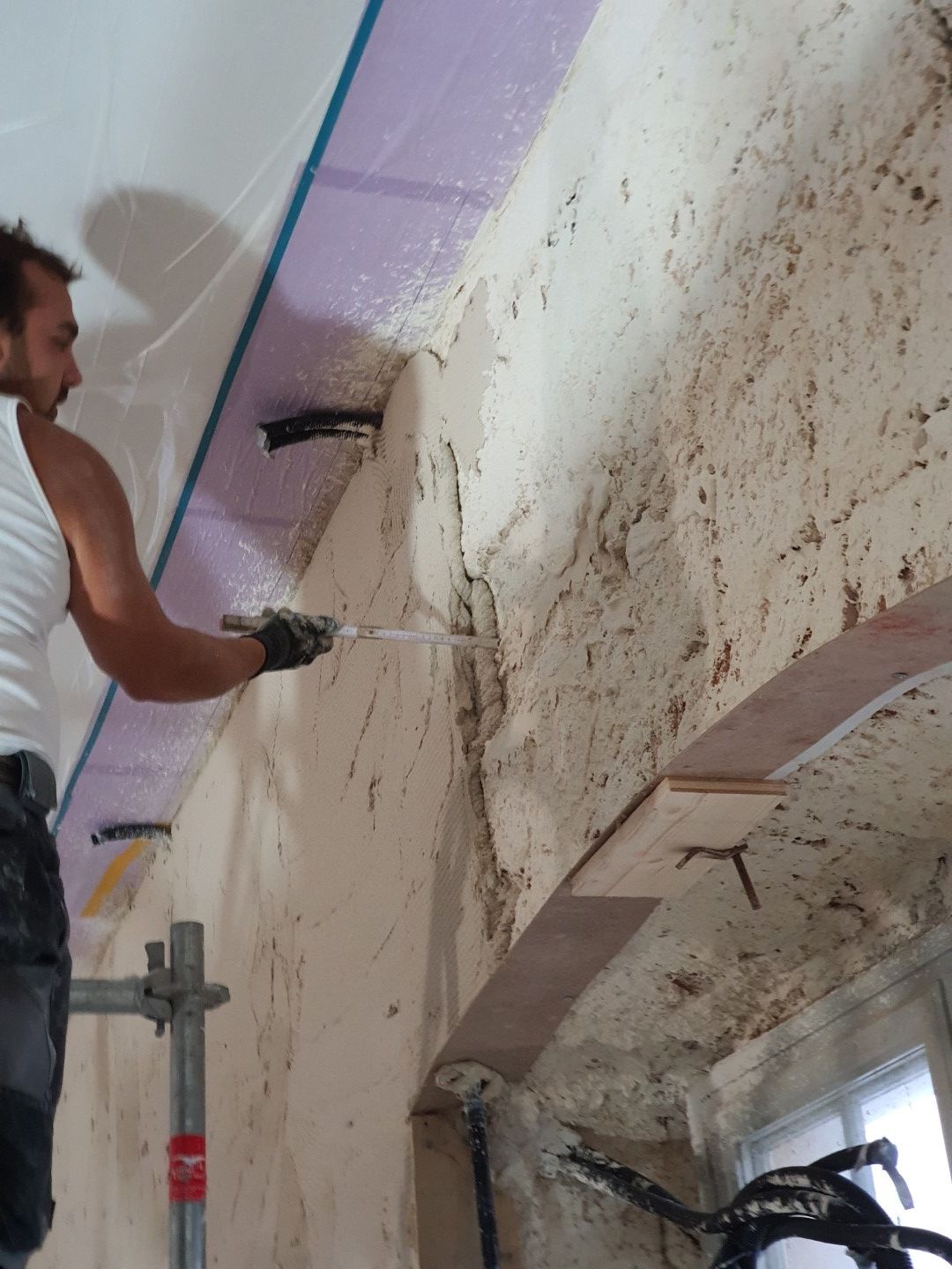 - Wärmedämmputz als Kalkdämmputz an den Außenwänden innen, inklusive Gewebespachtelung