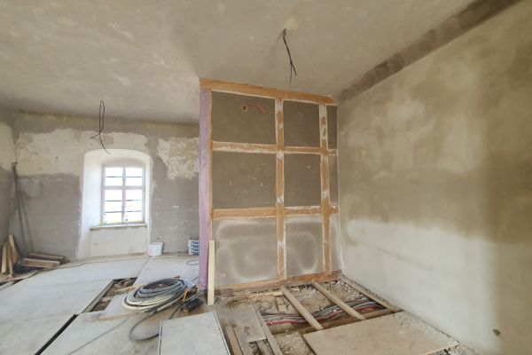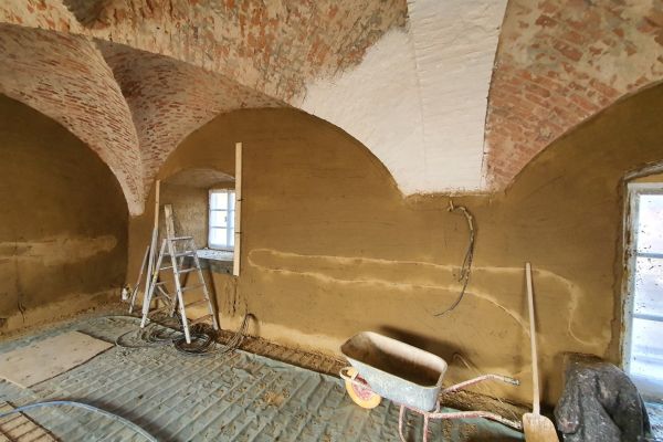 - Installationsschlitze und Fehlstellen schließen mit natürlichen Kalkunterputz