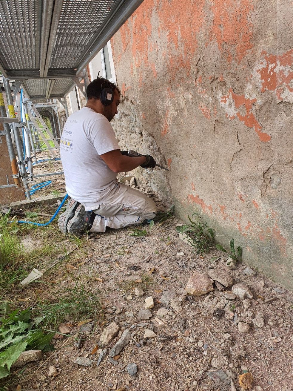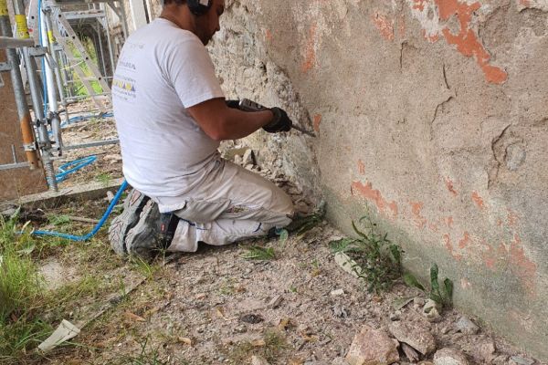 - Abnehmen von zementhaltigen oder mürben Sockelputzen