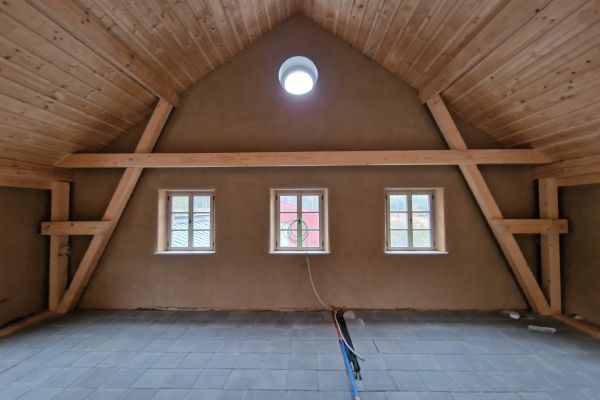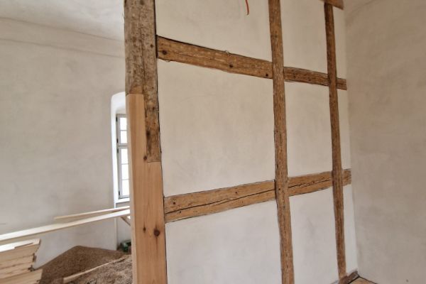 - Putzträger aus Schilfrohr und/oder Stucanet über Fachwerkbalken