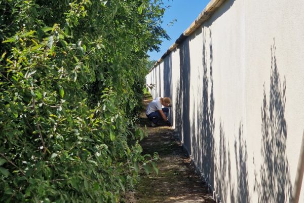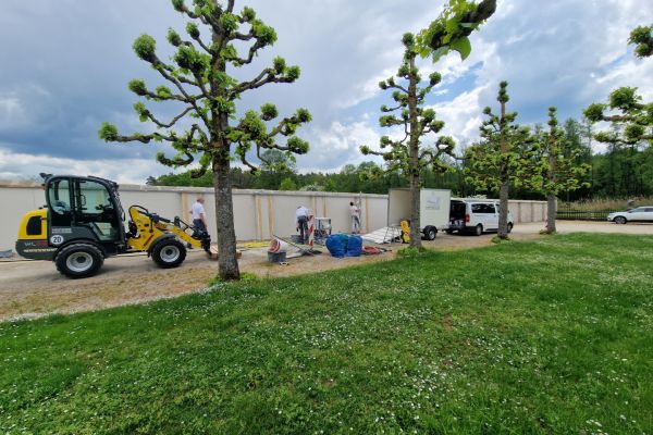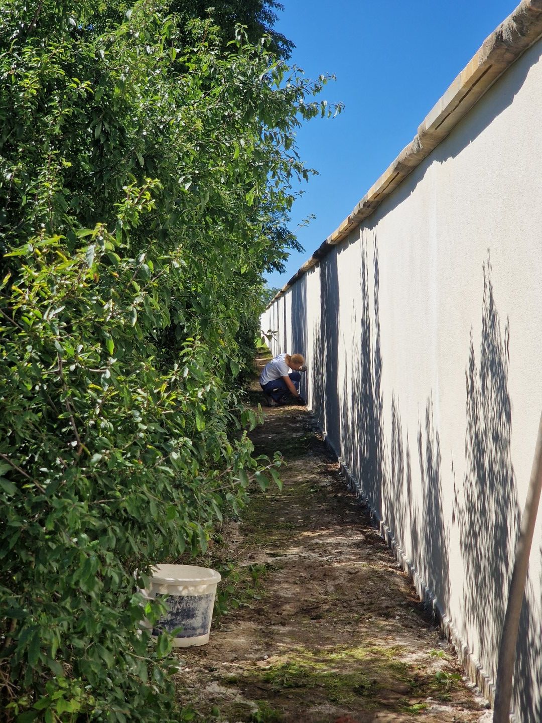 - Kiesschicht am Mauerfuß temporär entfernen und nach Fertigstellung neu verfüllen
