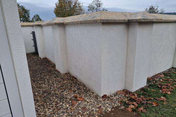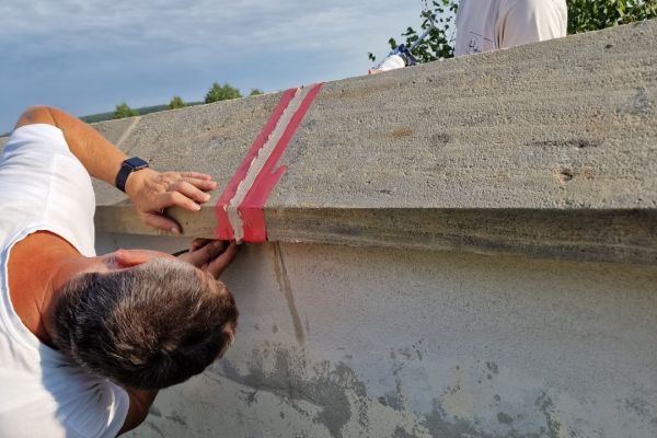 - Verfugung einzelner Fugen mit flexiblem, besandetem Natursteinsilikon, um die thermische Längenänderung der Mauerkrone besser aufnehmen zu können
