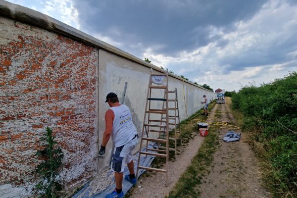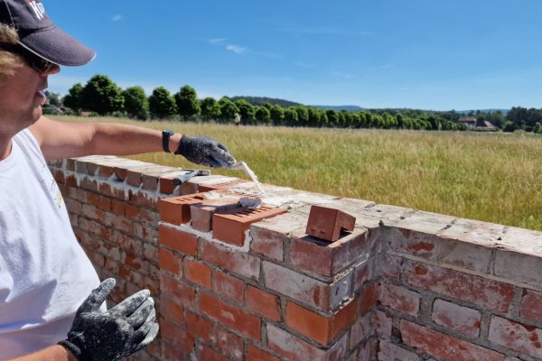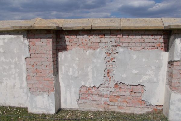 - Neuvermauern und Austauschen geschädigter und gelockerter Ziegel an der Mauerkrone